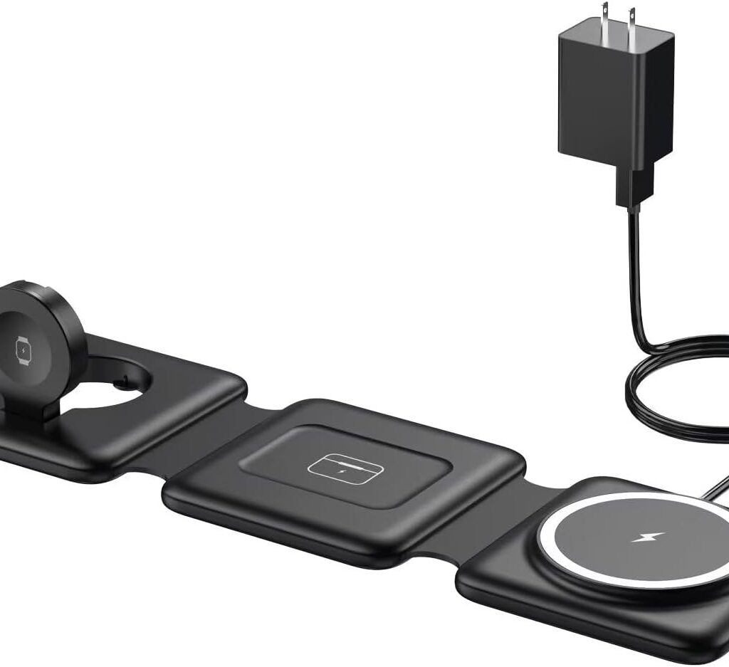 - Wireless Charging Station for Travel: Portable and foldable 3 in1 wireless charger that can charge for your iWatch, phone and AirPods at the same time. Lightweight and compact design, easy to carry around, it is a good companion for charging at home, office and travel.